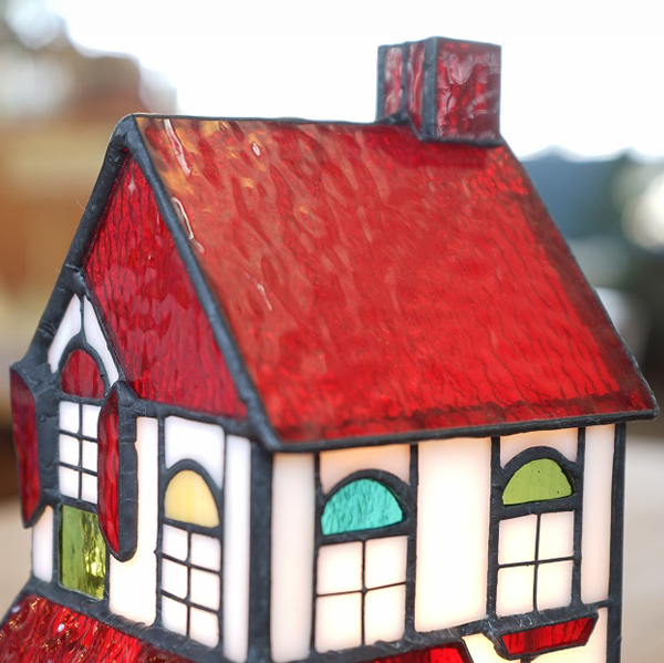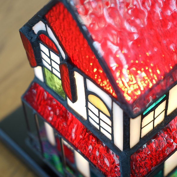 透明な赤い屋根が人気のハウス型ランプ。