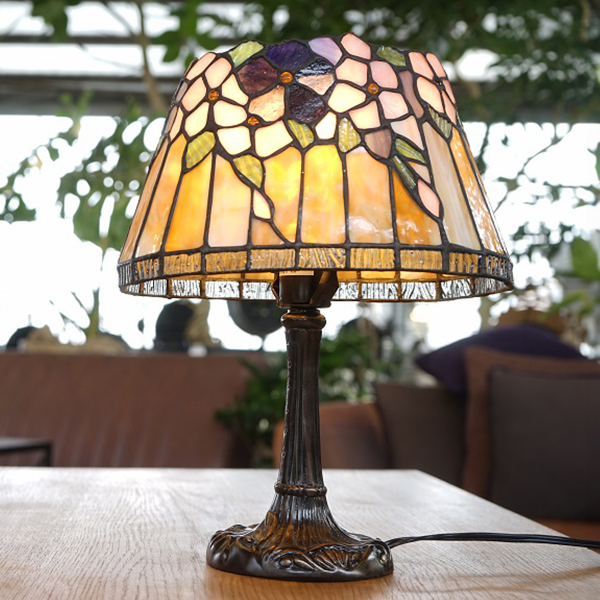 楕円形で奥行きが狭いため、コンソールの上にもご使用いただけるステンドグラスランプです。