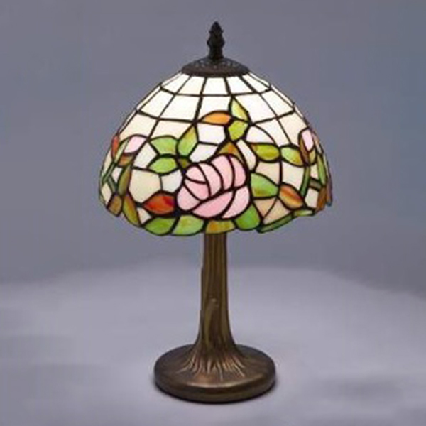 複数のアートガラスを組み合わせた美しいステンドグラスのランプ。