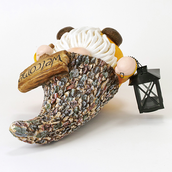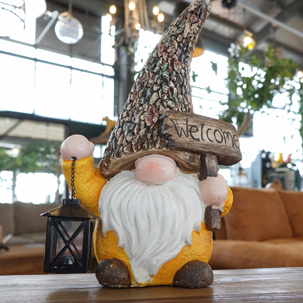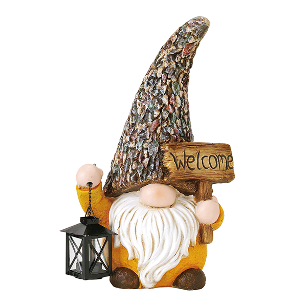 ラグドガーデン ウエルカムボードとランタンを持ったノームL [HYGY1053SW]