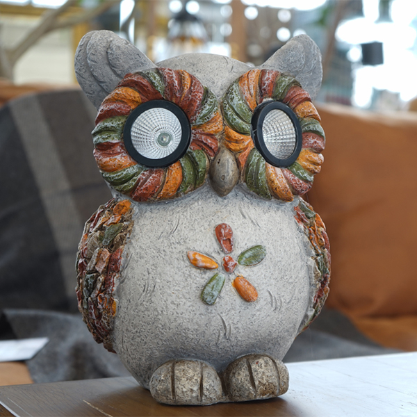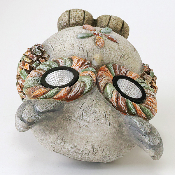 お目々が光るかわいらしいフクロウがお庭に幸せを運びます!フクロウの目はソーラーライトで光ります。