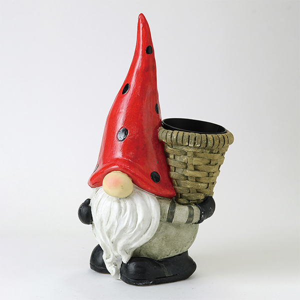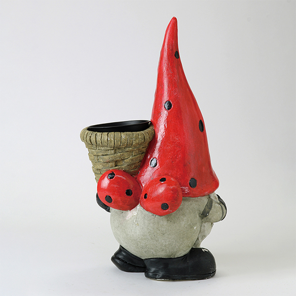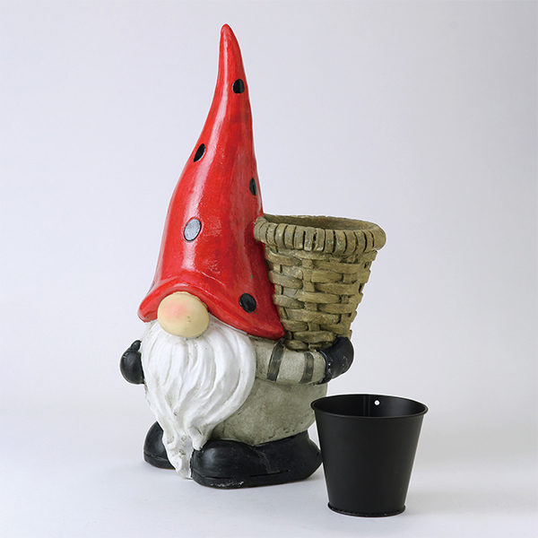 とても個性的な表情でお庭が楽しくなるガーデンノーム!ノームが背負っているバスケットトには花苗を植えることができます。