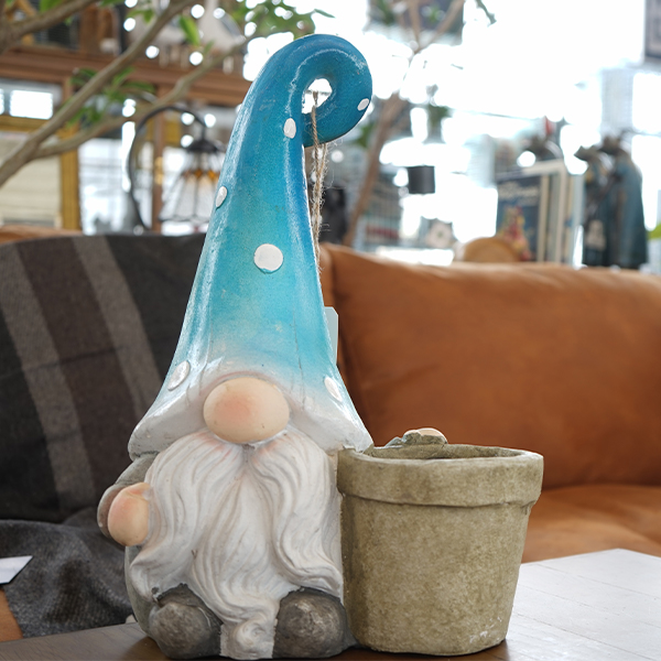 とても個性的な表情でお庭が楽しくなるガーデンノーム!ノームの抱えている鉢には花苗を植えることができます。