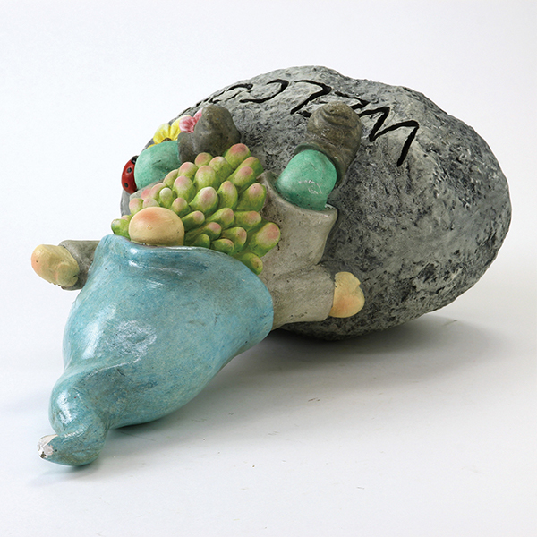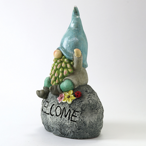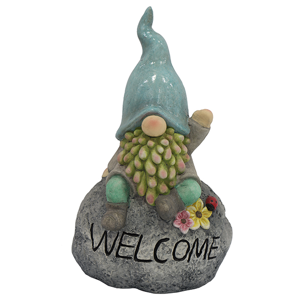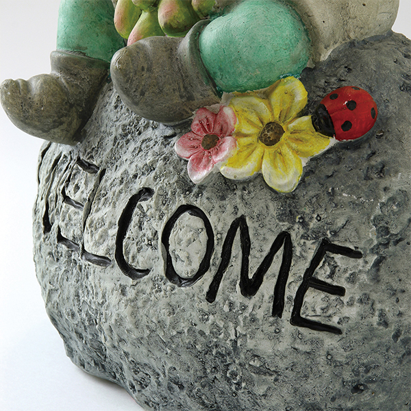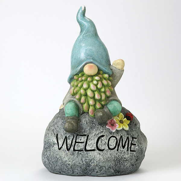 とても個性的な表情でお庭が楽しくなるガーデンノーム!ウェルカムと書かれた石で寛ぐノームがお庭をリラックスムードで包んでくれます。