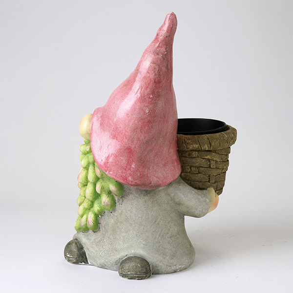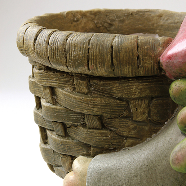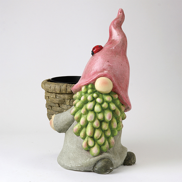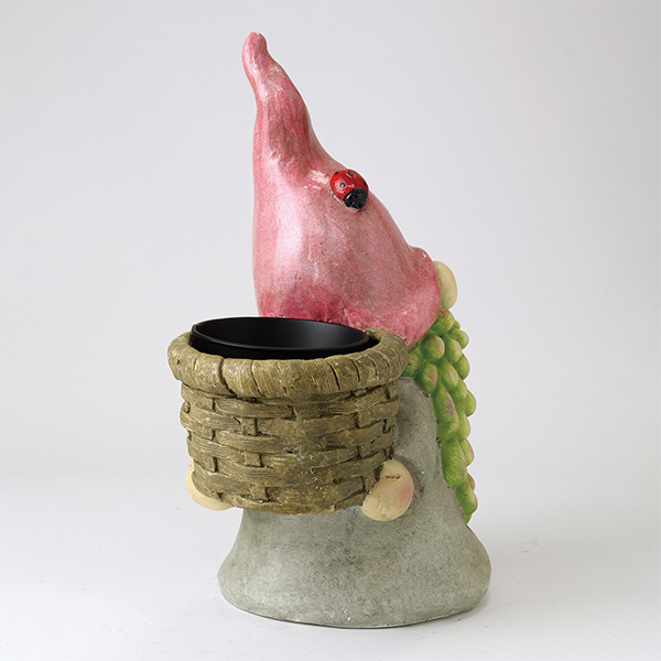 とても個性的な表情でお庭が楽しくなるガーデンノーム!ノームの背負っているバスケットには花苗を植えることができます。
