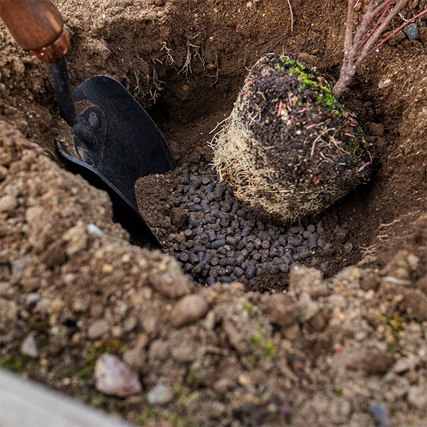 地植えの樹木や果樹、バラなどの既存の植物には、適期に根を切りながら穴を掘り、その土と一緒に混ぜて使用してください。