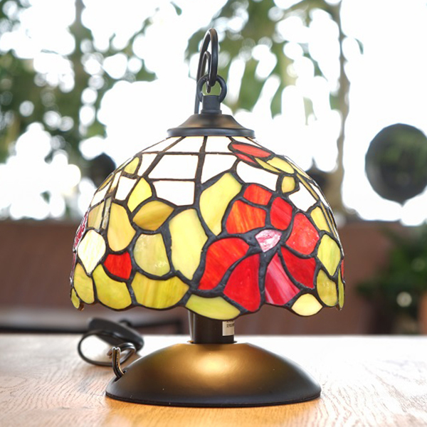 直径20cmほどの美しいステンドグラスランプ。